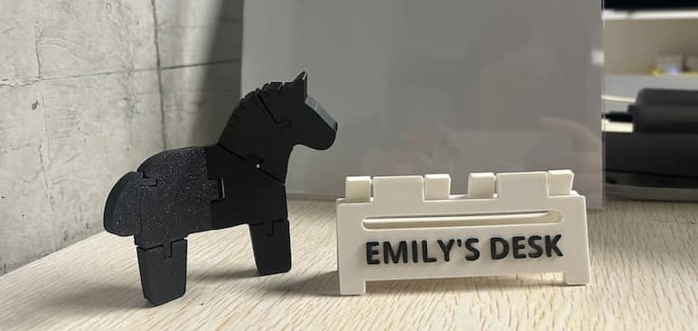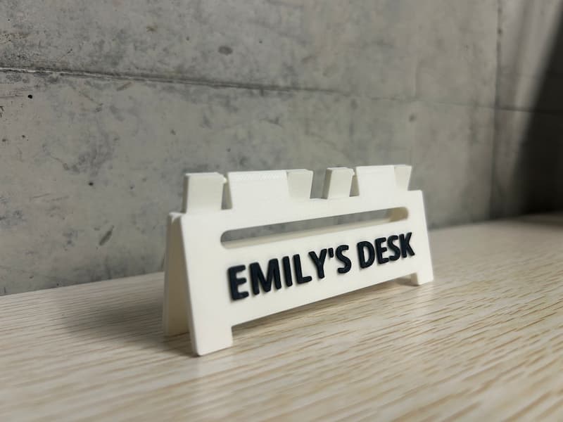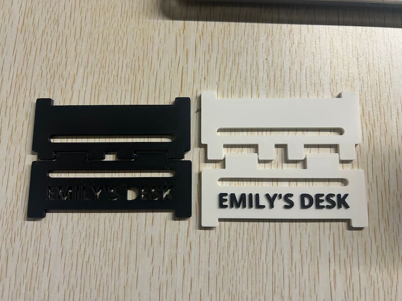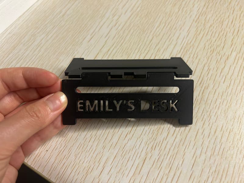 Several days ago, I visited the Bambu Lab 3D Printing Flagship Store in Shenzhen to find inspiration, and I came across this signage. Inspired by it, I decided to create a desk sign that reads “Emily’s Desk” to personalize my workspace.