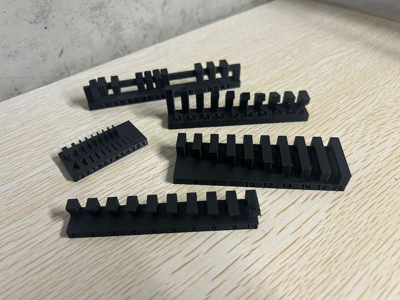 The result: Clearances from 0.4mm to 1mm can move freely along the track. The 0.3mm clearance can only move halfway. The 0.1mm and 0.2mm clearances cannot move at all.