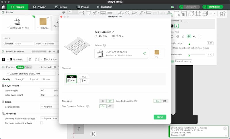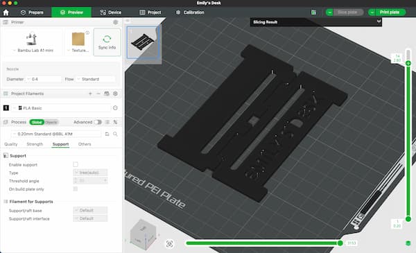 In this project, I used the Bambu Lab A1 Mini for 3D printing and Bambu Studio as the slicing software. Bambu Studio is an open-source, feature-rich slicer with advanced capabilities for preparing 3D models for printing.