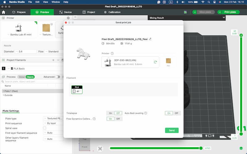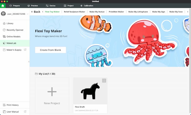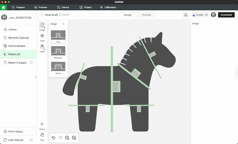I used MakerLab Flexi Toy Maker to add hinges so the horse can bend. This tool can be found in the Bambu Studio app (the same app used as the slicer). It is very easy to use and beginner-friendly: