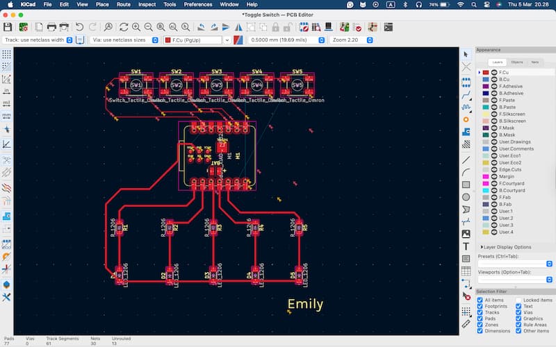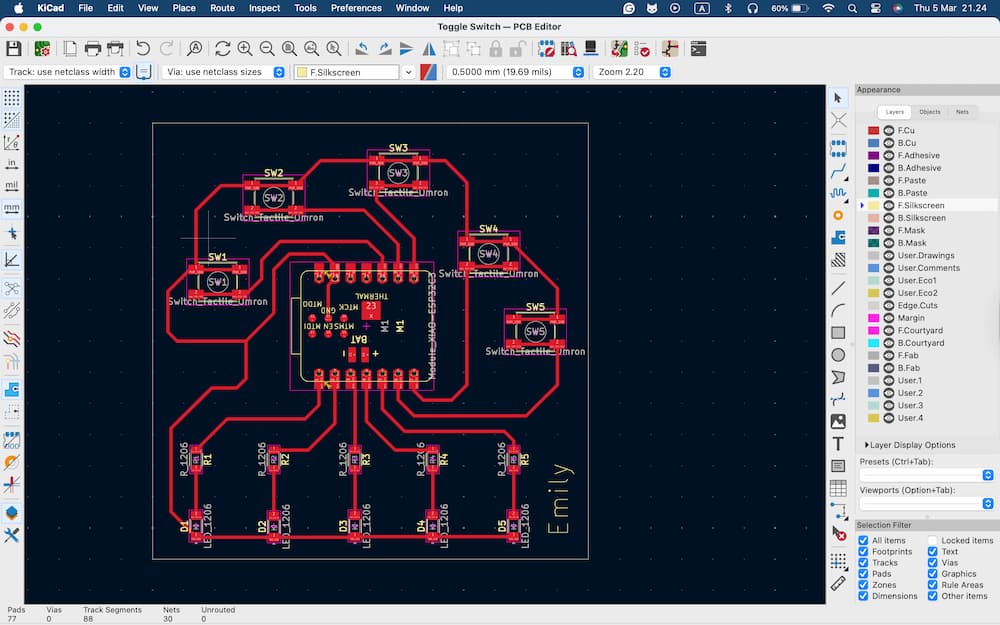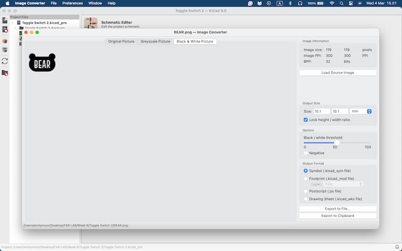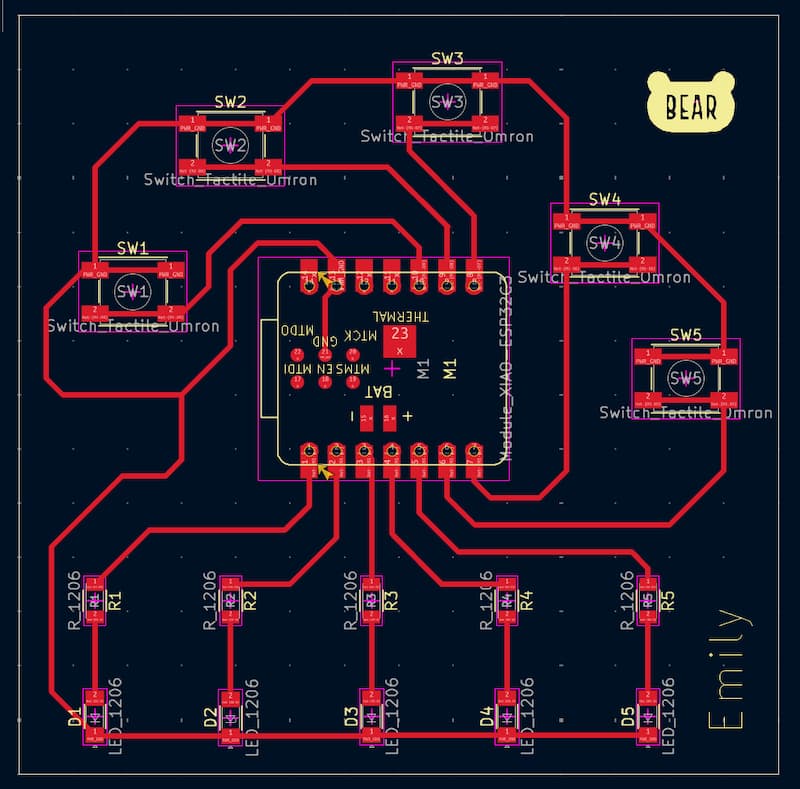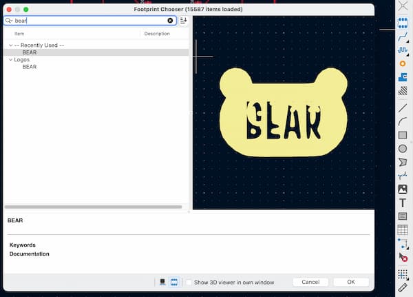 I added this bear logo (size 1 × 1 cm) that I made in Adobe Illustrator to the PCB design.