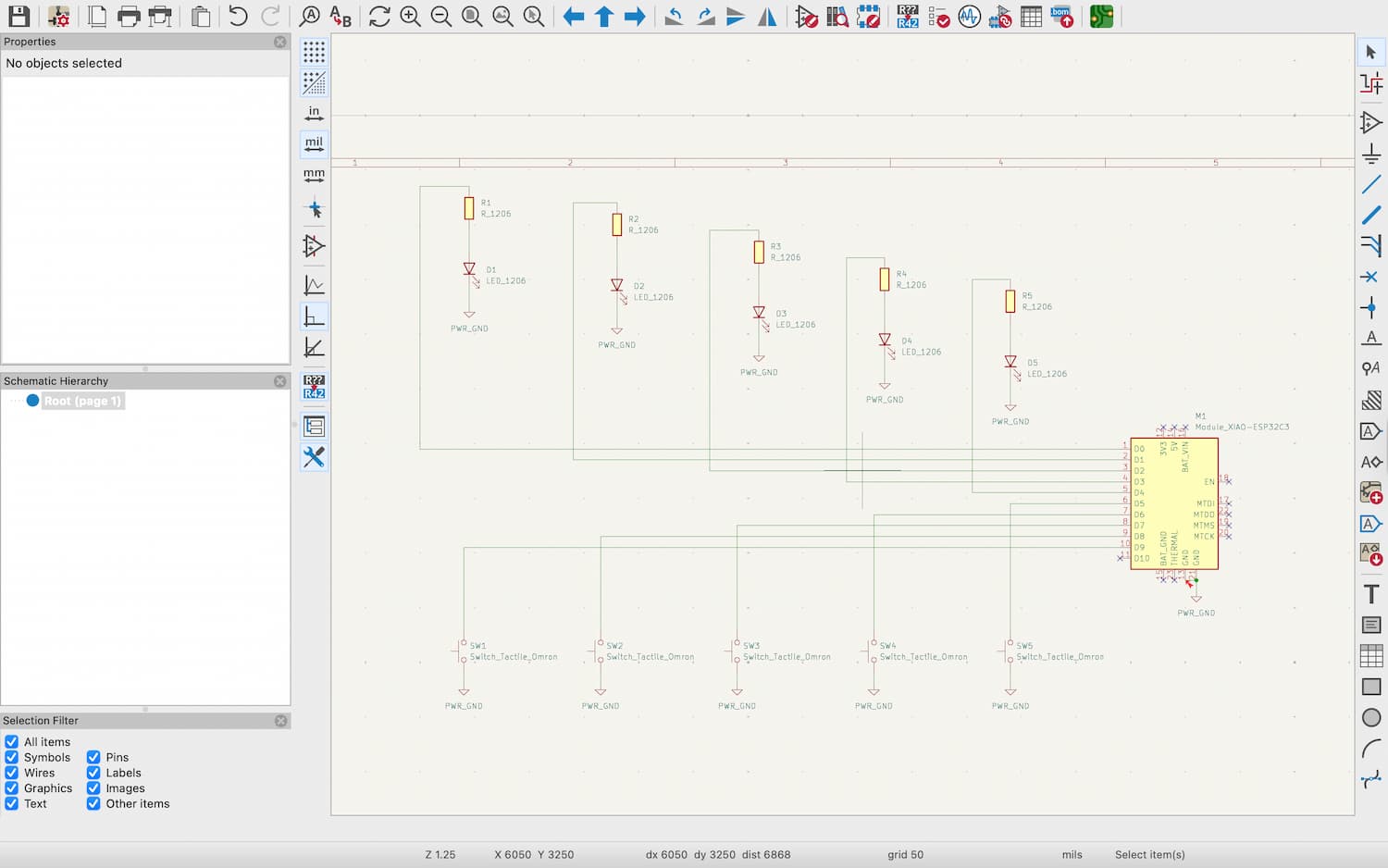 For this assignment, I used Wokwi to simulate the circuit and KiCad Version 9.0.7 to design the printed circuit board (PCB). Additionally, I used the KiCad FabLib plugin (KiCad component library based on the the Fab Inventory) to assist with PCB design.