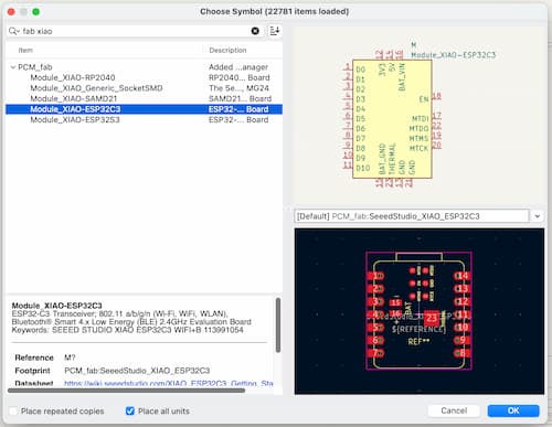 Then, I used the KiCad FabLib plugin to add the components from the inventory to the schematic and arrange them.