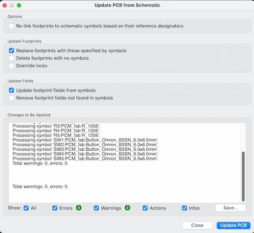Update PCB from Schematicwindow opened and showed if there were any errors