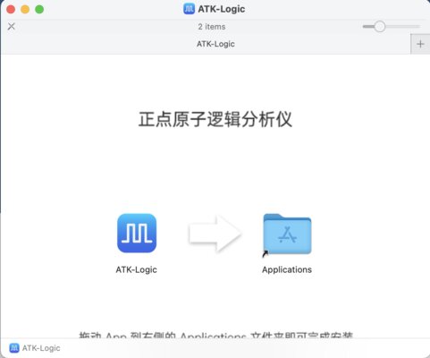 After successfully downloading the file, drag the ATK-Logic icon into the Applications folder to complete the installation: