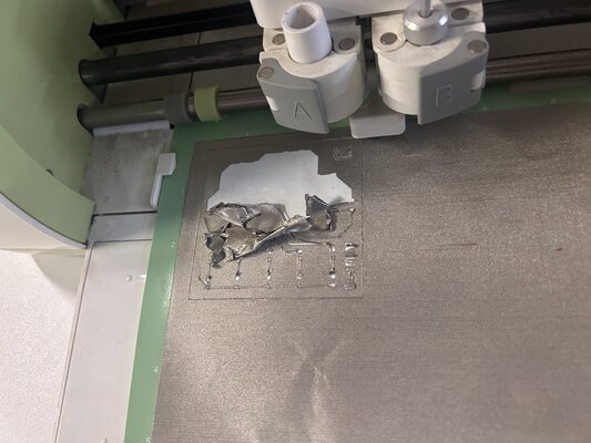 I also tried the same method using conductive gray paper on a PVC sheet. This time, I successfully cut it and performed the weeding process: