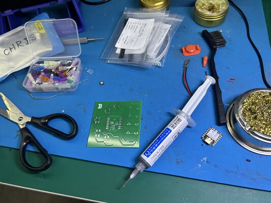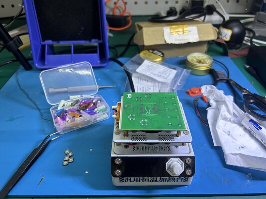I placed the PCB directly on the soldering hot plate while it was turned off, so I wouldn’t have to move it later (to avoid components falling off after placement). Another benefit is that the height makes it easier to assemble the components.