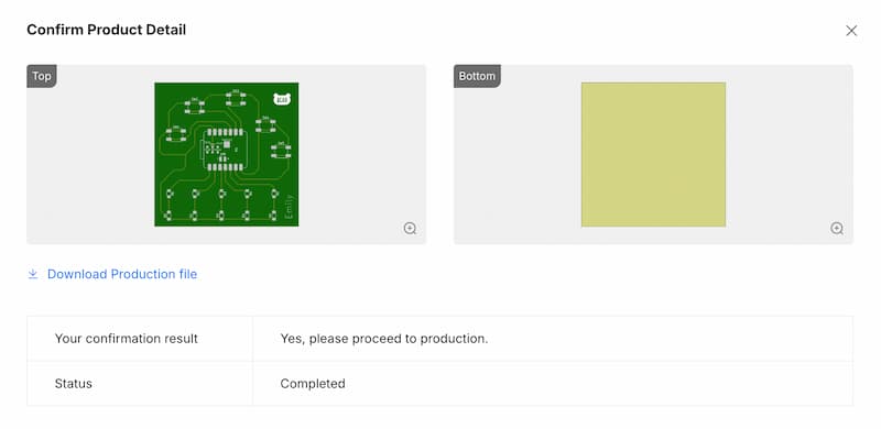 Since I selected Confirm Production File, I received an email the next day to confirm the production files. After confirming, production started.