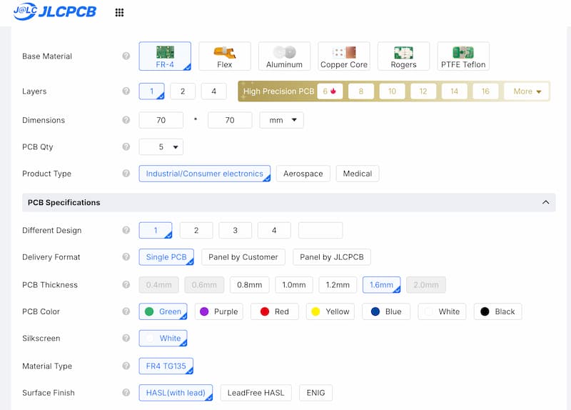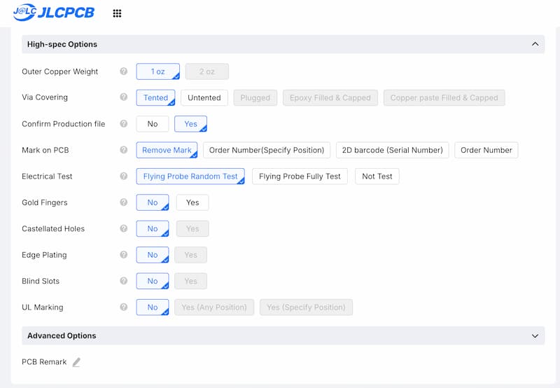 Next, I opened the JLCPCB website and uploaded the Gerber files.