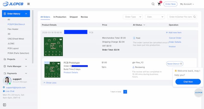 on 16 March 2026, I submitted my PCB design to JLCPCB. Since I am based in Shenzhen, I wanted to try ordering from the China website, but I was not able to sign up because I do not have a Chinese phone number.