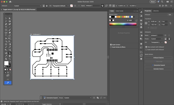 My design dimensions were 7 × 7 cm, but the copper tape width was only 6 cm. Therefore, I needed to adjust my design to fit the tape. Here is the updated design: