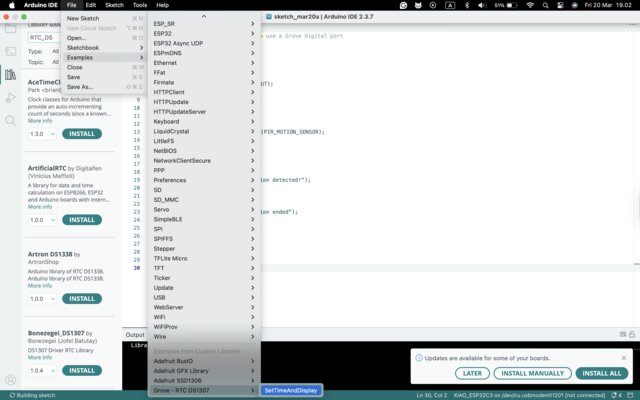 File -> Examples -> Grove - RTC DS1307 -> SetTimeAndDisplay