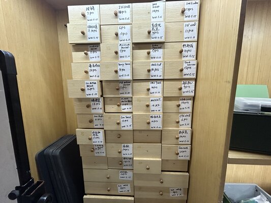 The input devices cardboard at Chaihuo Makers Space contains various modules, most of which are from Seeed’s Grove system.