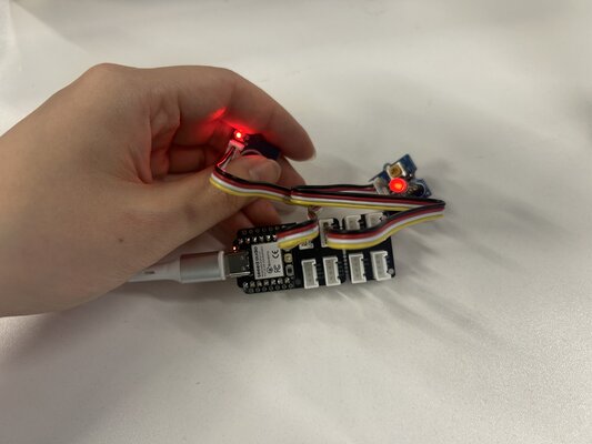 6. The LED turns on when we place our finger near the sensor, and it turns off when we move our finger away.const int TouchPin = D0; const int ledPin = D1; void setup() { pinMode(TouchPin, INPUT); pinMode(ledPin, OUTPUT); } void loop() { int sensorValue = digitalRead(TouchPin); if (sensorValue == HIGH) { digitalWrite(ledPin, HIGH); } else { digitalWrite(ledPin, LOW); } }