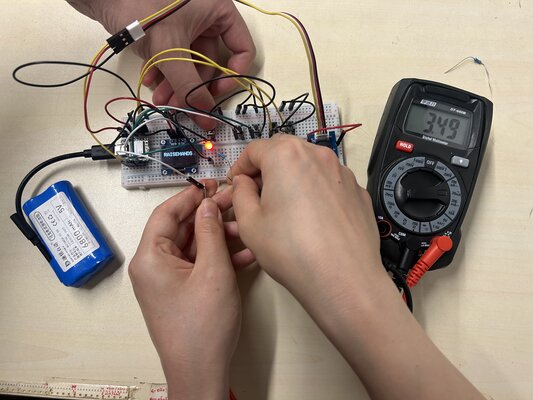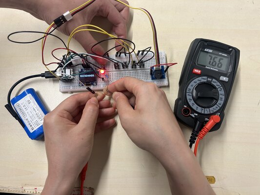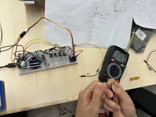 I = 1.12 V / 100 Ω = 11.2 mAMeasured Current: I also measured the current using a multimeter: 7.66 mA
