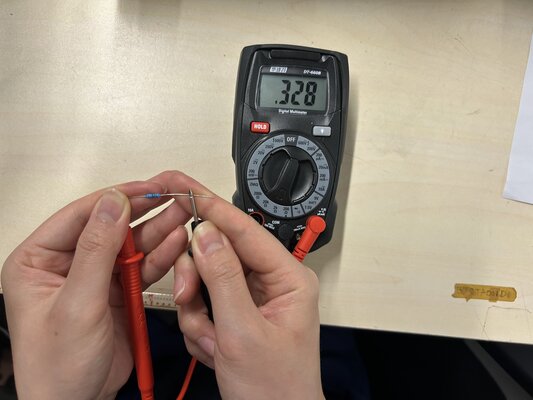 Calculated Current: Since I know the voltage across the resistor (1.12 V) and its resistance (218 Ω), I used Ohm’s Law (I = V / R) to calculate the current: