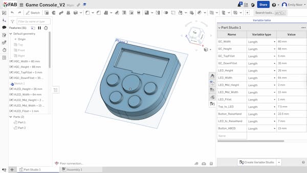 I redesigned the model in Onshape and implemented parametric design, which I had not set up in Week 2.