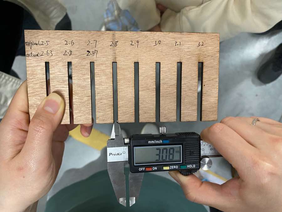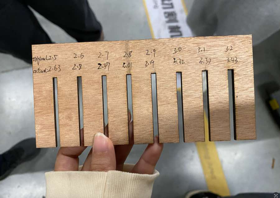 Step 6 Checking the error range of the laser cutting machine on the Comb, compare the actual width and the one in the file.