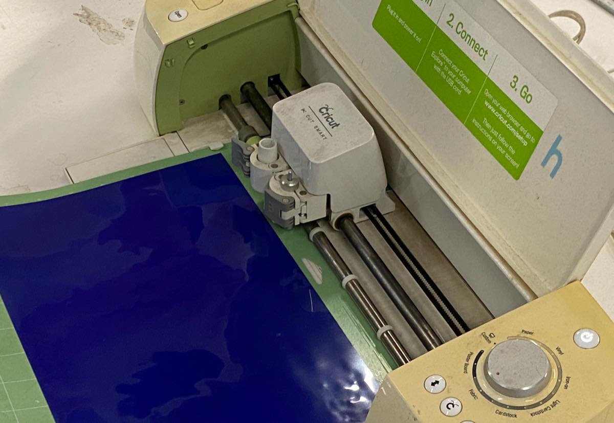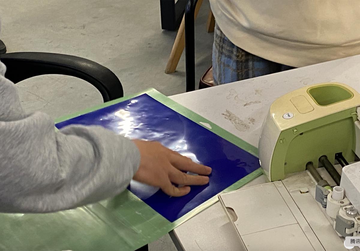Step 3, prepare the sticker and cutting mat. Place the sticker on the mat and then insert into the machine