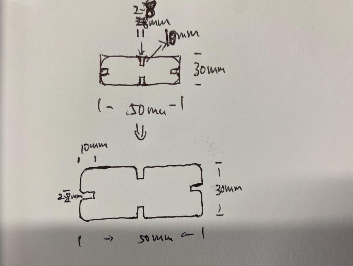 Make several pieces of rectangular blocks as below, there are 4 kerfs on each side
