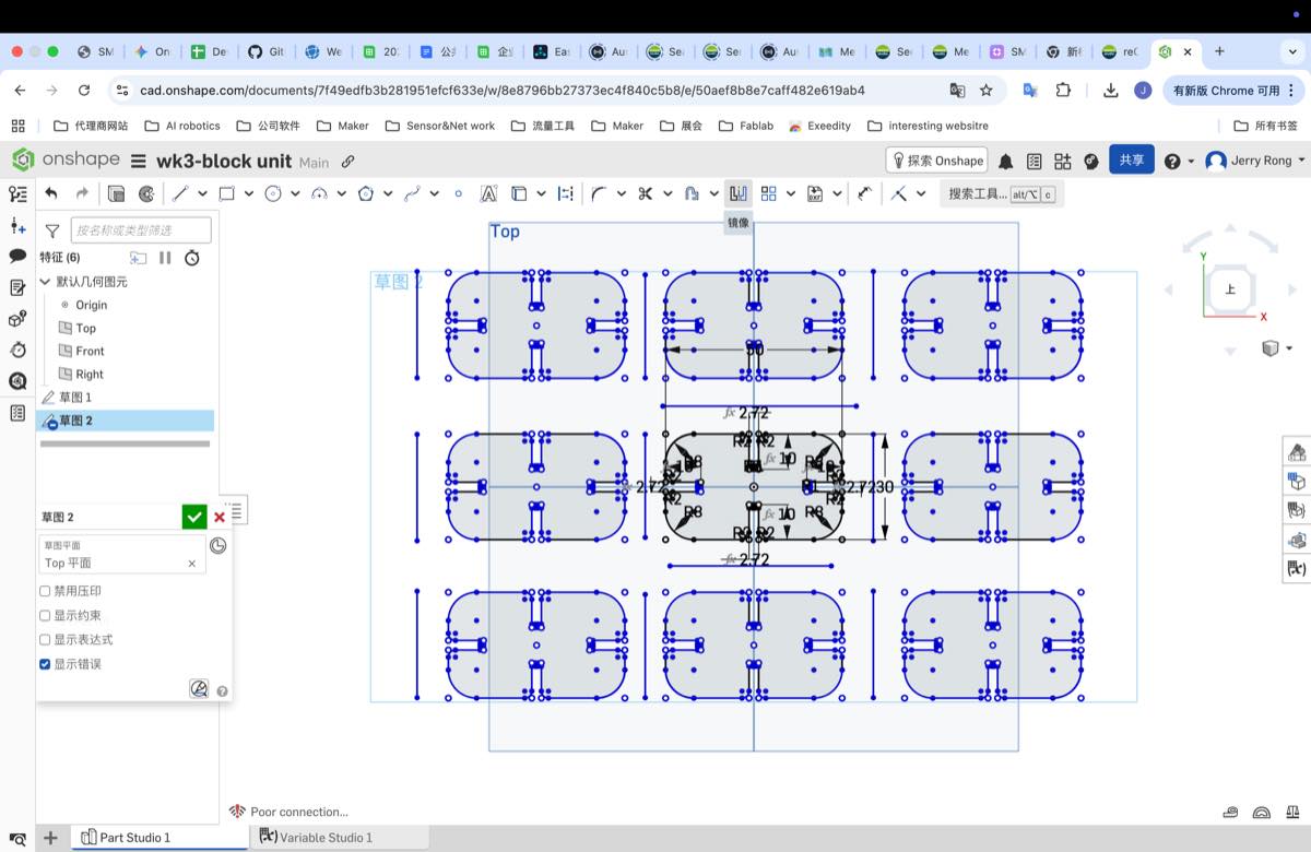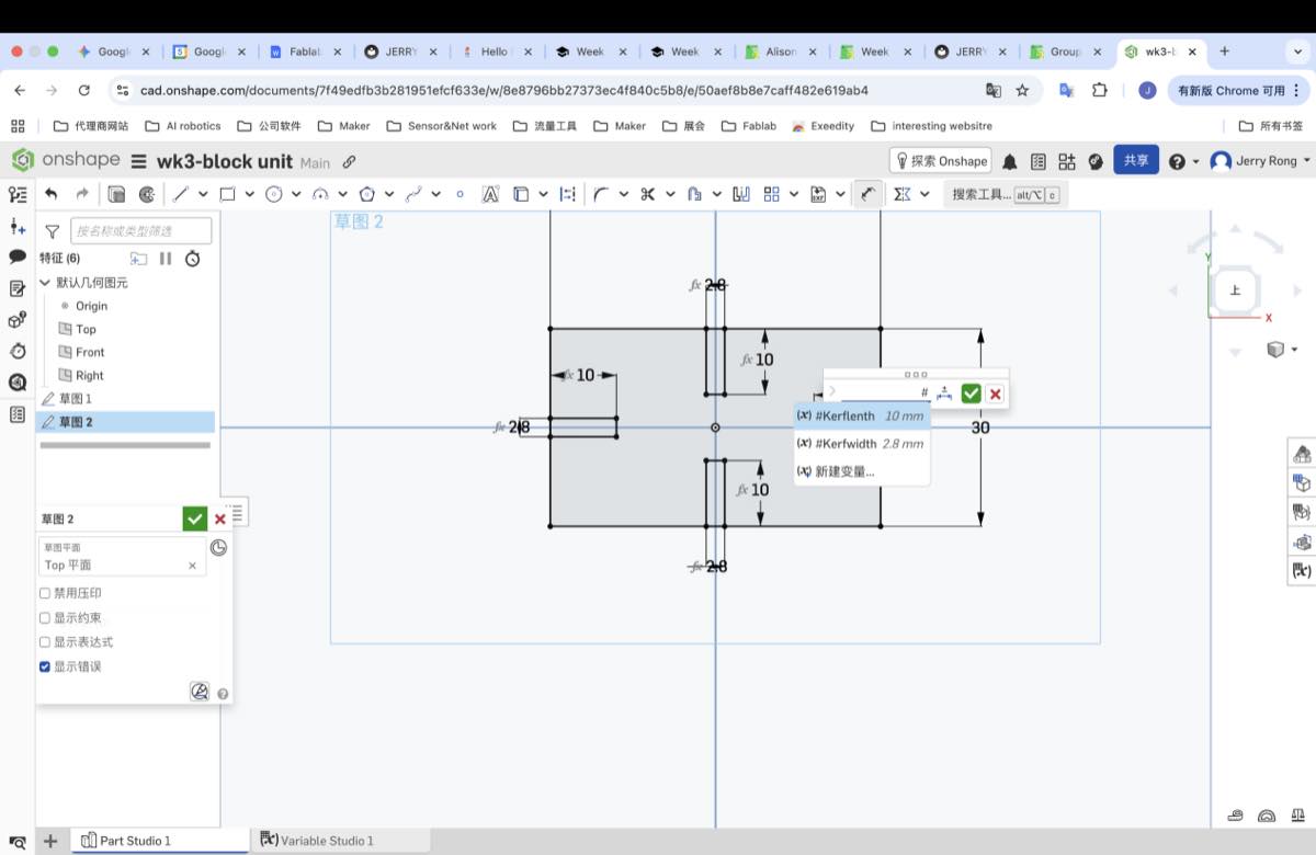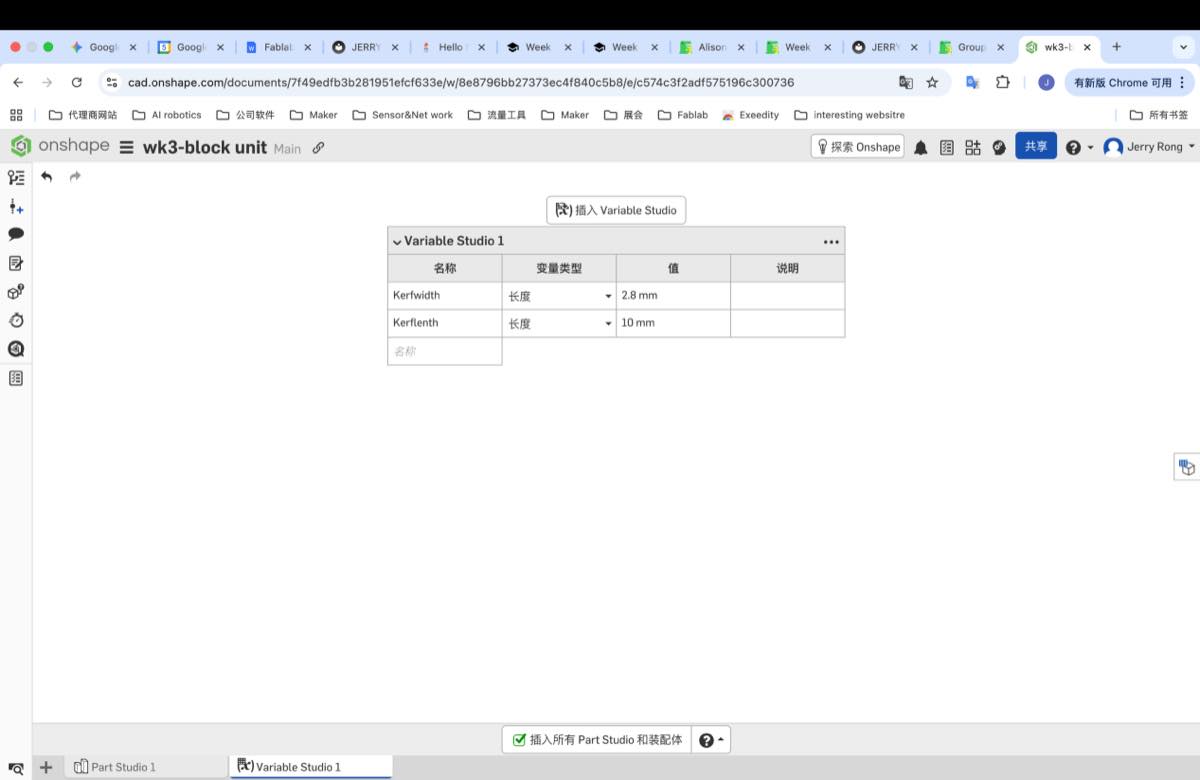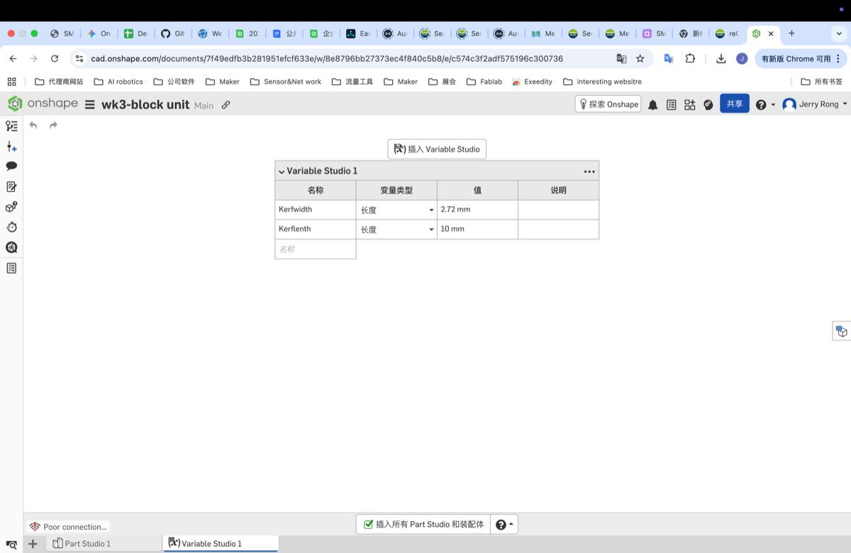 I need to ajust the Kerf to 2.94 -0.22 =2.72 mm, use onshape with the function “miror” to make 12 same block.