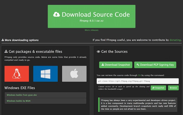 For video compression, the app-based FFMPEG tool is used. There are a few ways to install the tool locally; the packages & executable files from gyan.dev was selected arbitrarily. Further details could be found online.