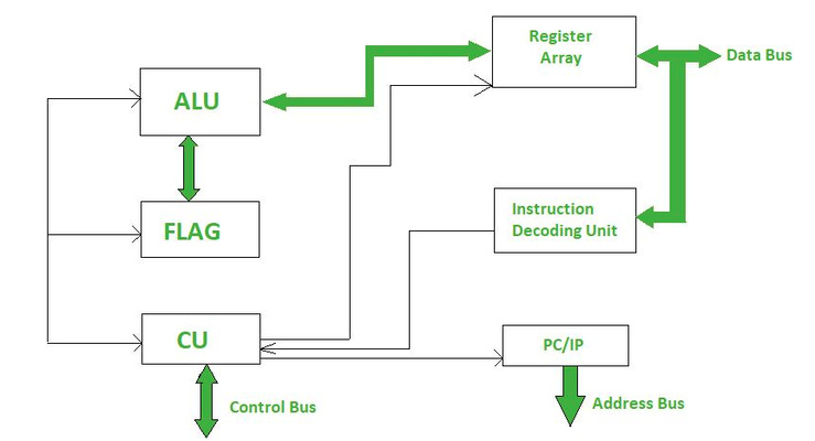 - Typical microprocessor structure (sourced from GeeksforGeeks — Introduction of Microprocessor)