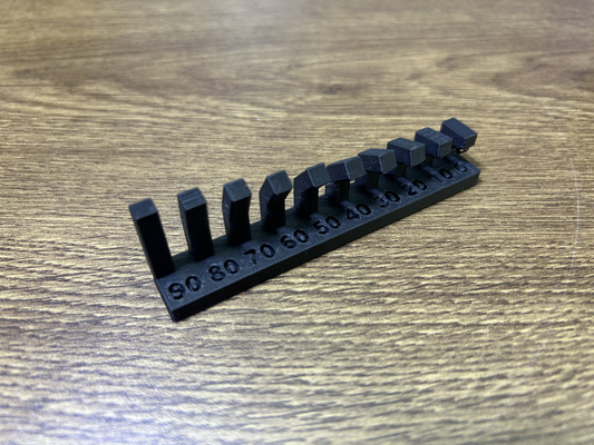Aim of test : To determine the maximum overhang length and bridging test before "spaghetti" could be observed.