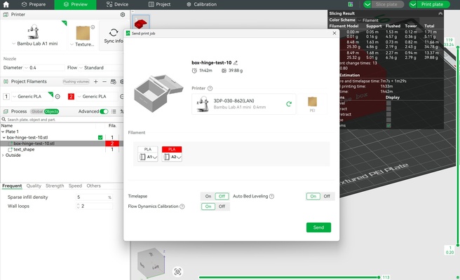 In Bambu Studio, the assignment of filament colors can be a bit confusing. The number of filaments to be used is set before clicking the “Print Plate” button, but the selection of the specific filament for each color is done after this step.