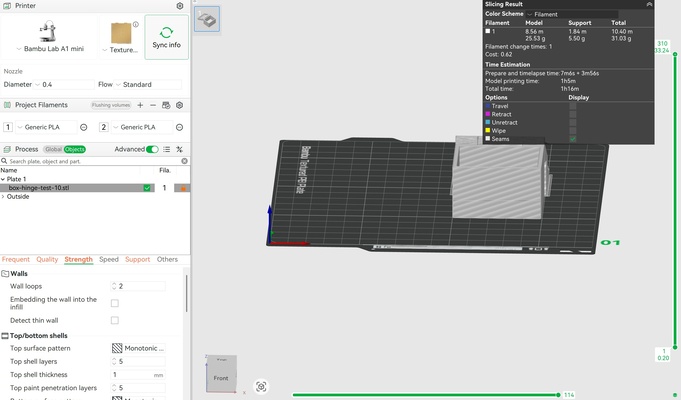 In this study, the FDM process is investigated using the Bambu Lab A1 mini. The printer specifications and settings (including material) used for the test are provided in the following tab.