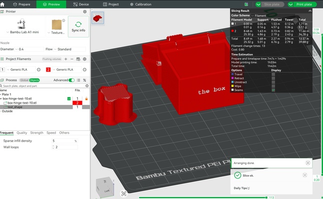 - Longer print duration : multi-print coloring requires unloading and reloading of filament. These transitions interrupt continuous extrusion and add processing time at every swap. Extra 30 minutes are required in comparison to the single-print option.