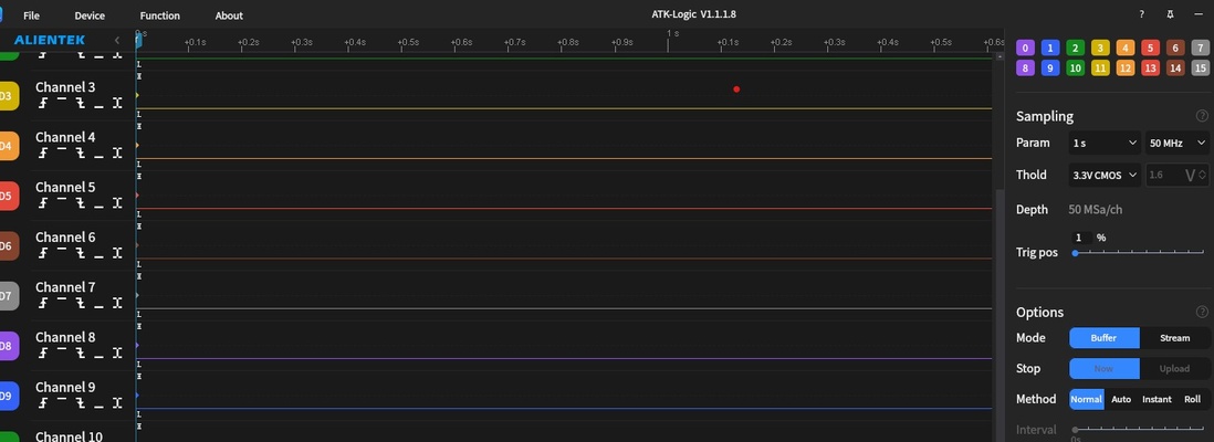 The connection between the dupont jumper wires and the logic analyzer pins can be loose. User might need to gently push the jumper wire unto the pin so that it sits securely