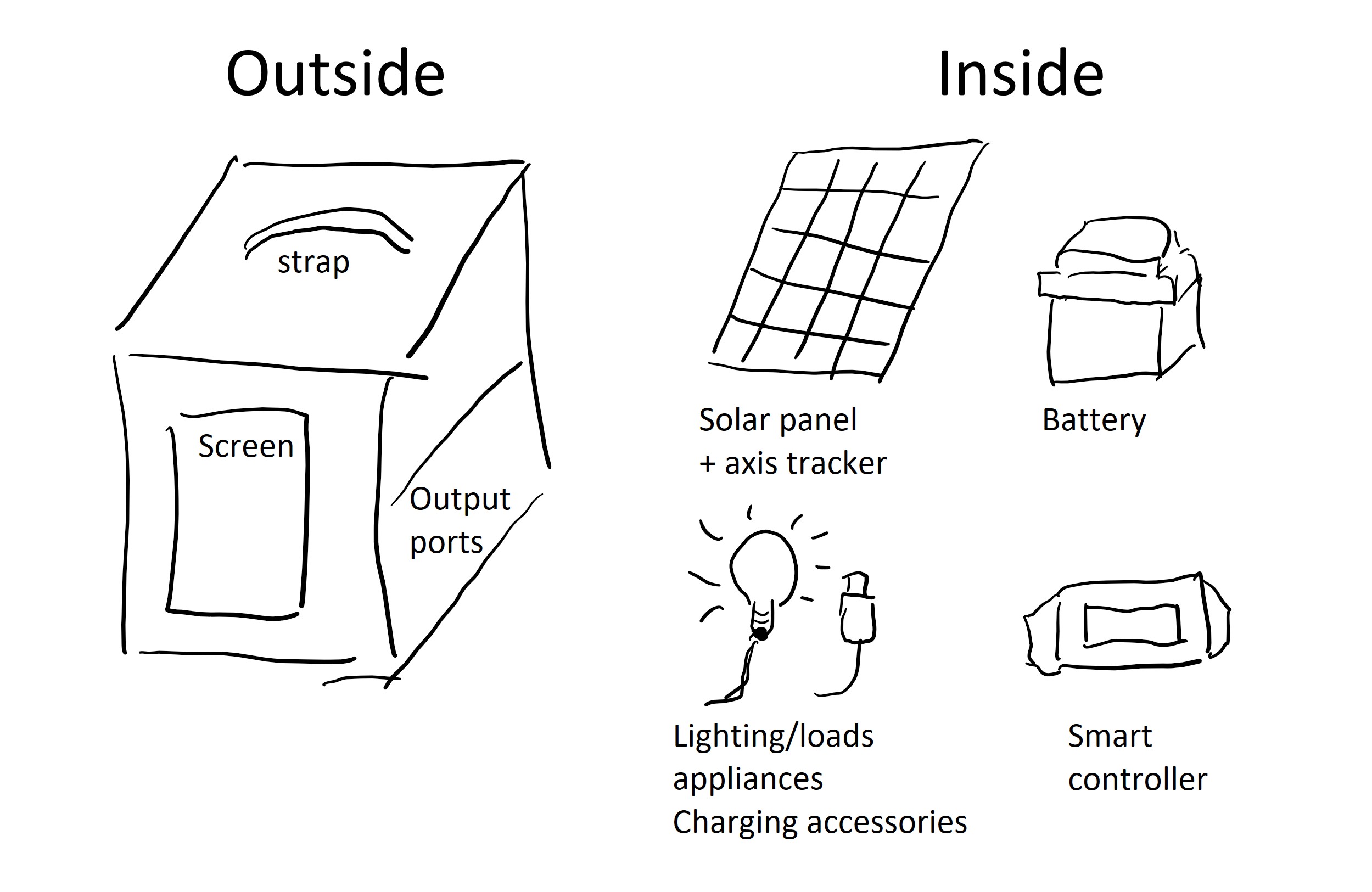 | Battery | Vout: 5V, Iout : 2.5~3A, Li-ion, 6800 mAh | 1 | Powers the system when sunlight is low |