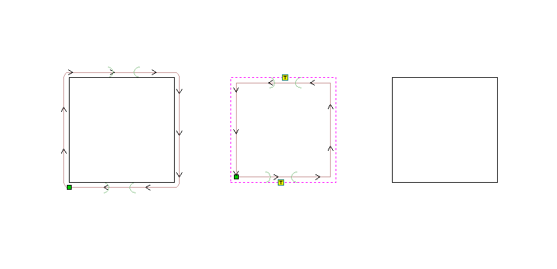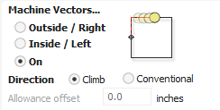 - On: The cutter follows the centerline of the vector. This is used for engraving, marking, and centerline cuts where inside/outside compensation is not needed.