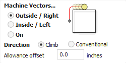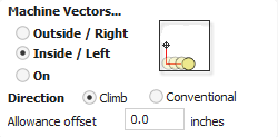 The next toolpath was the Inside / Left toolpath. I followed the same steps used to create the outside toolpath, but instead selected the Inside / Left machine vector direction. Once calculated, I saw that there was a noticeable difference in size between the outside and inside toolpaths.