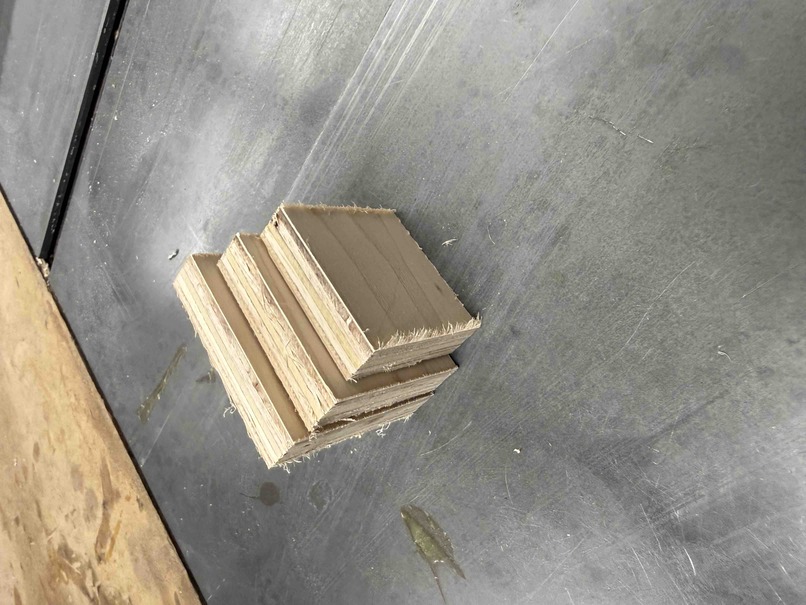 I first opened my aspire file on the computer connected the our lab’s ShopBot. Since the wood on the machine was already used, I had to adjust the position of my design and recalculate each toolpath. Once done, I saved the toolpaths in one file. Then, following our lab’s ShopBot workflow, I cut my design through the software. Here is what the design looked like right after cutting.