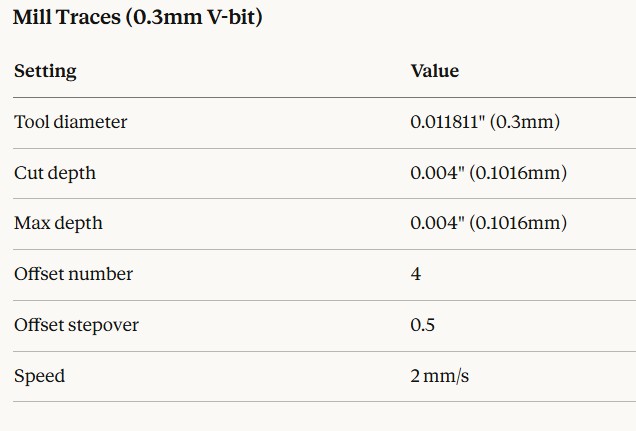 These settings are closer to Miriams. Slightly different from the instructor training. I need to do some controlled testing to see which is best for me and my machine. https://fabacademy.org/2020/labs/leon/students/adrian-torres/week04.html#cubiko