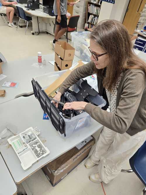 Then after Kim, Dorian, and Angela made the list of what we think we need, I asked Zack Budzichowski what we had available to use from last years projects. Then I helped sort through the parts. We had the motors, the motor controllers, the motor controller shield, pulleys and GT2 belt (which I am familiar with from our linear slides in our tech challenge robot). There were some of the rods, but they werent the right length, but we may be able to use them anyways.