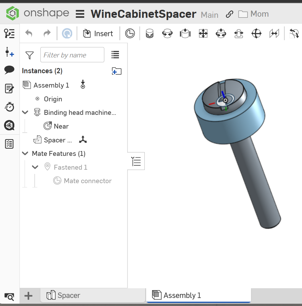 - In the assembly tab bring in the screw we are using from the standard library. #8-32 x 1.25 inches
