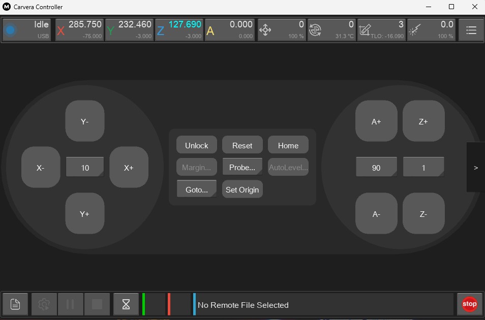 This is the software we use to control the milling machine. It is very simple, all I did was upload the gcode, then press run. The machine autoleveled the bed, automatically changed the tool to the correct tool, and then started the job.