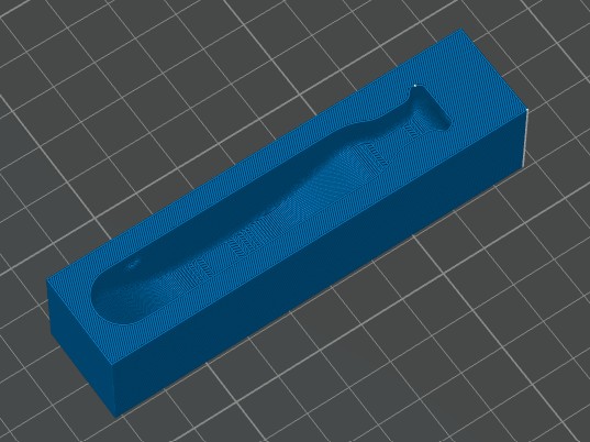 This is the mold after printing. The layer lines are barely visible but still require some work. I won't need to cast another mold because I am casting a soft material.