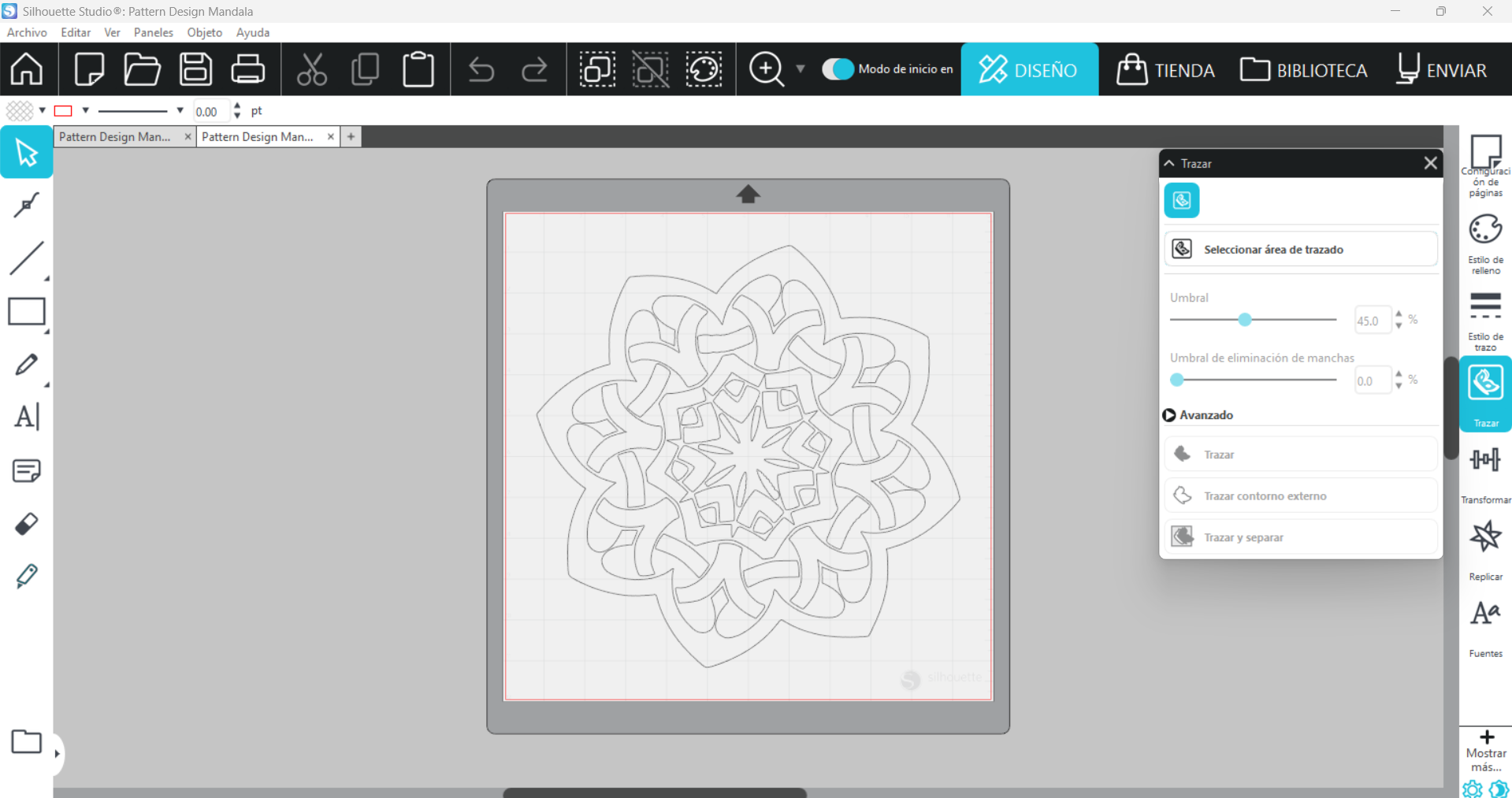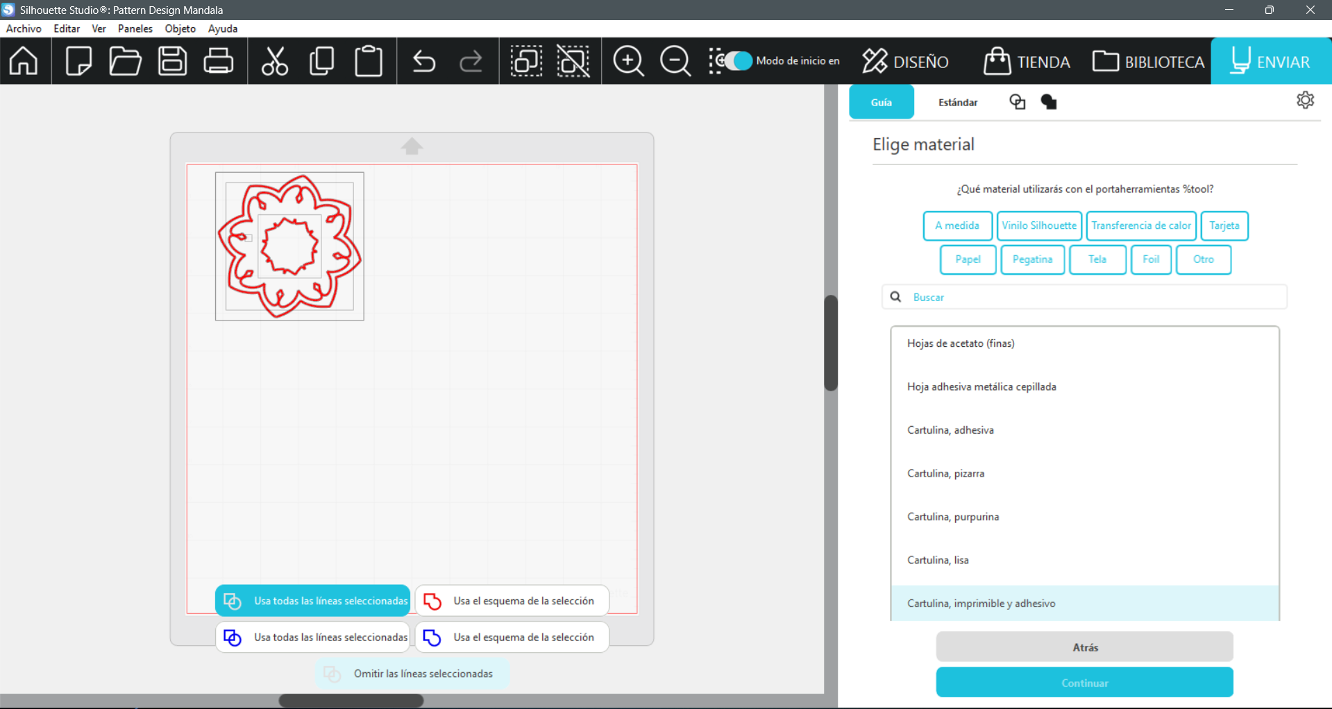 The software automatically identifies the vector lines of the design and displays them in red, indicating the paths that will be executed by the blade during the cutting operation.