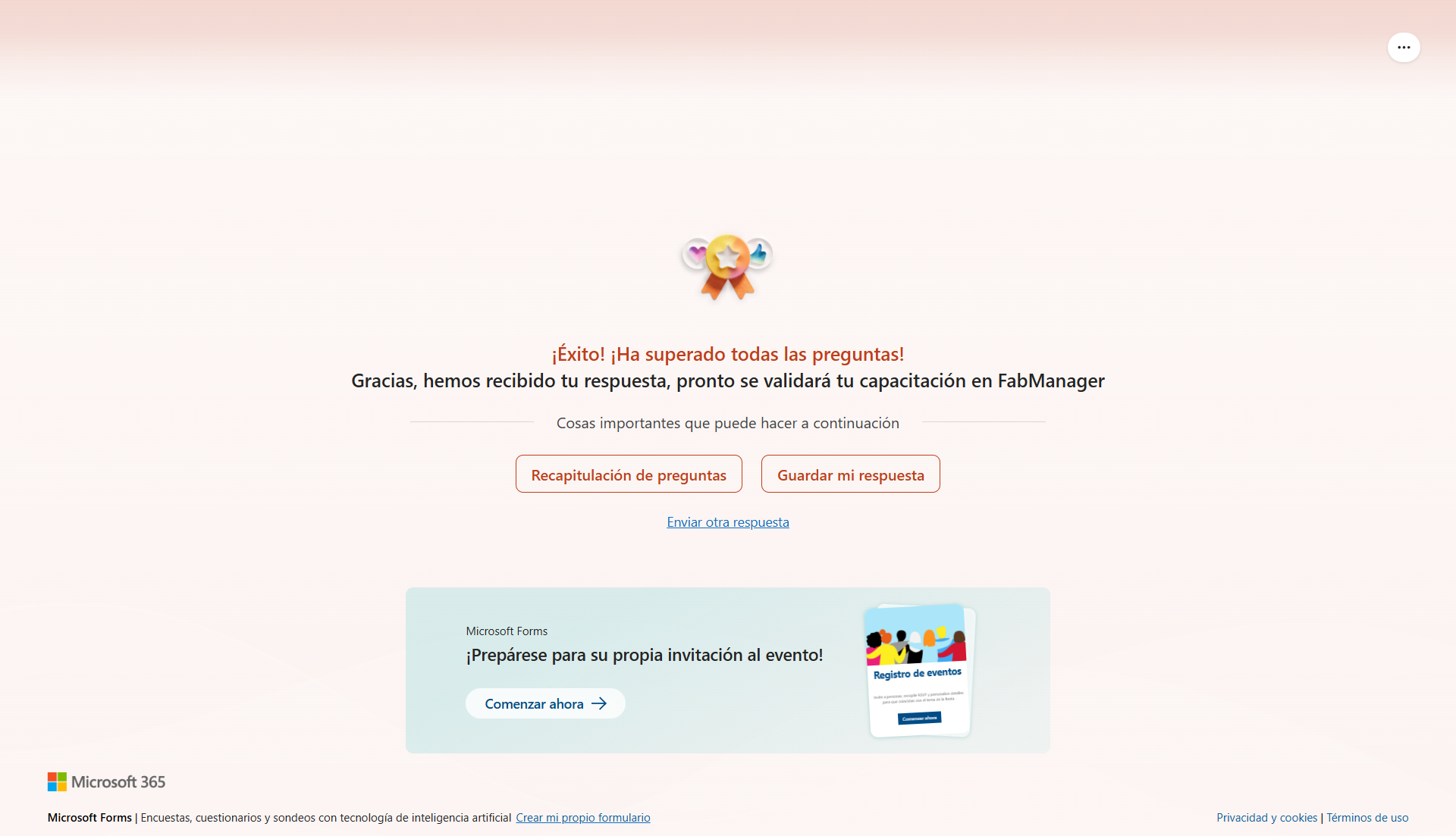 Subsequently, the required evaluation was completed and approved to confirm the correct understanding of the contents and to continue in accordance with the guidelines established on the platform.