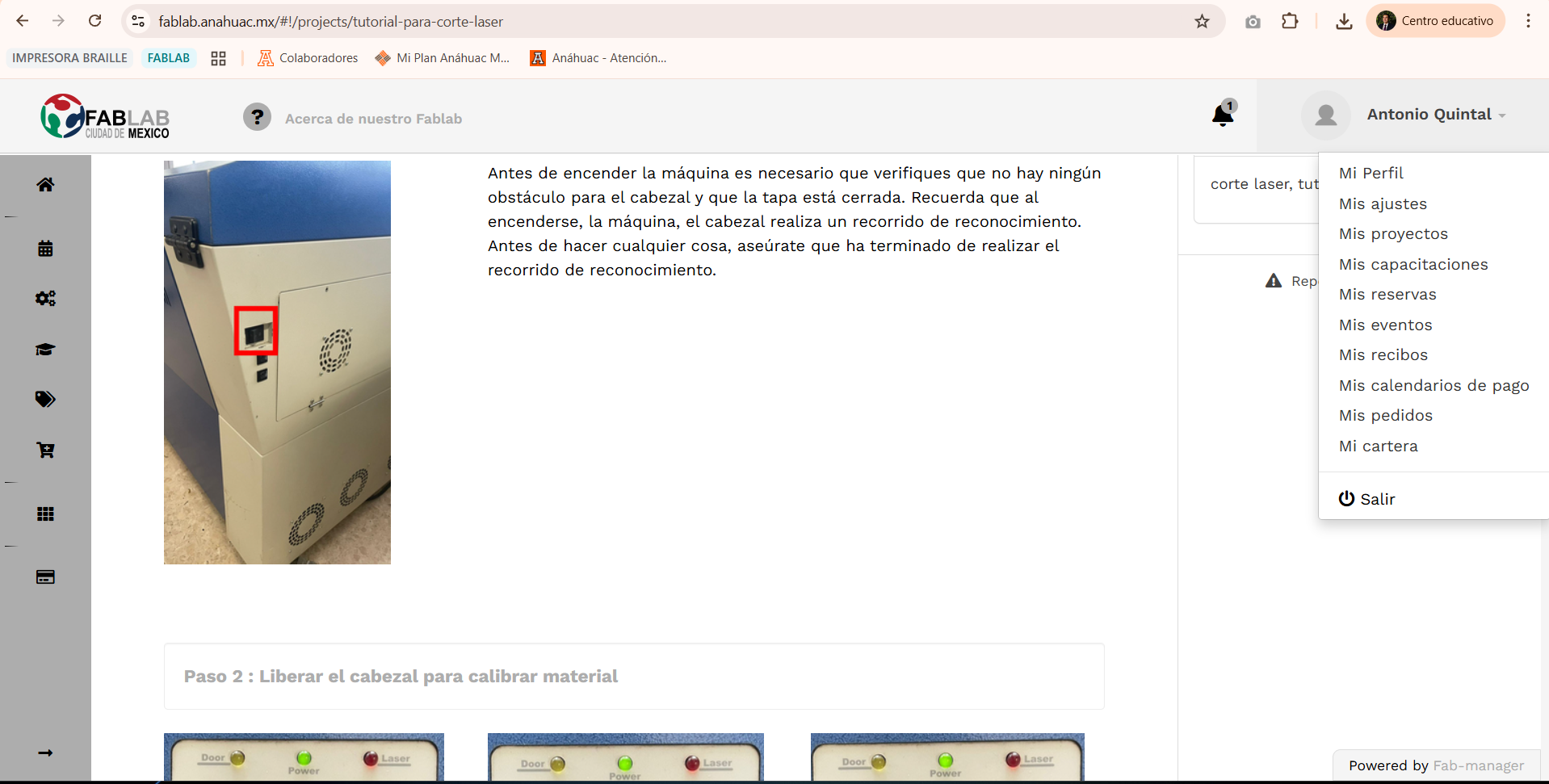 Before making the cuts, the proper operation of the laser cutter was verified to prevent failures during the cutting process and to ensure the safety.