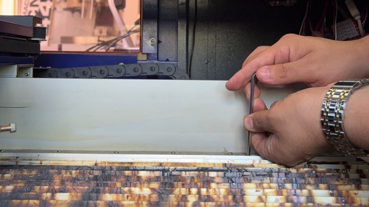 The laser cutting table was leveled to ensure a flat surface and uniform cutting.