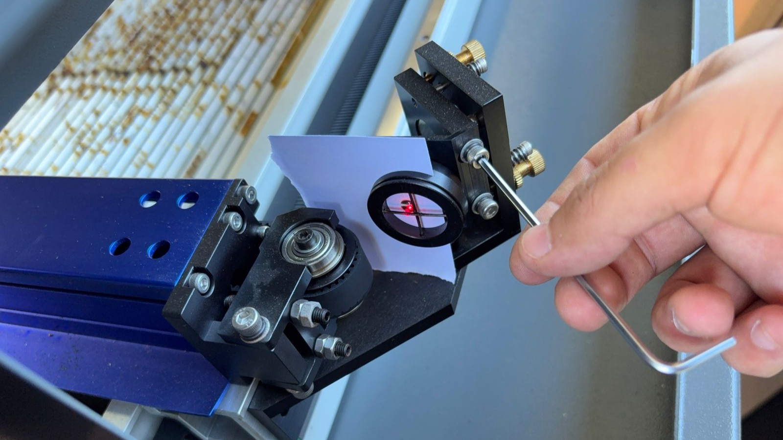 The process began with the disassembly of the laser system, including the red dot laser, lens air assist cone, laser head, and laser tube.