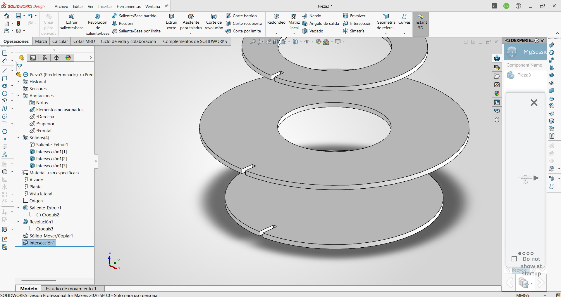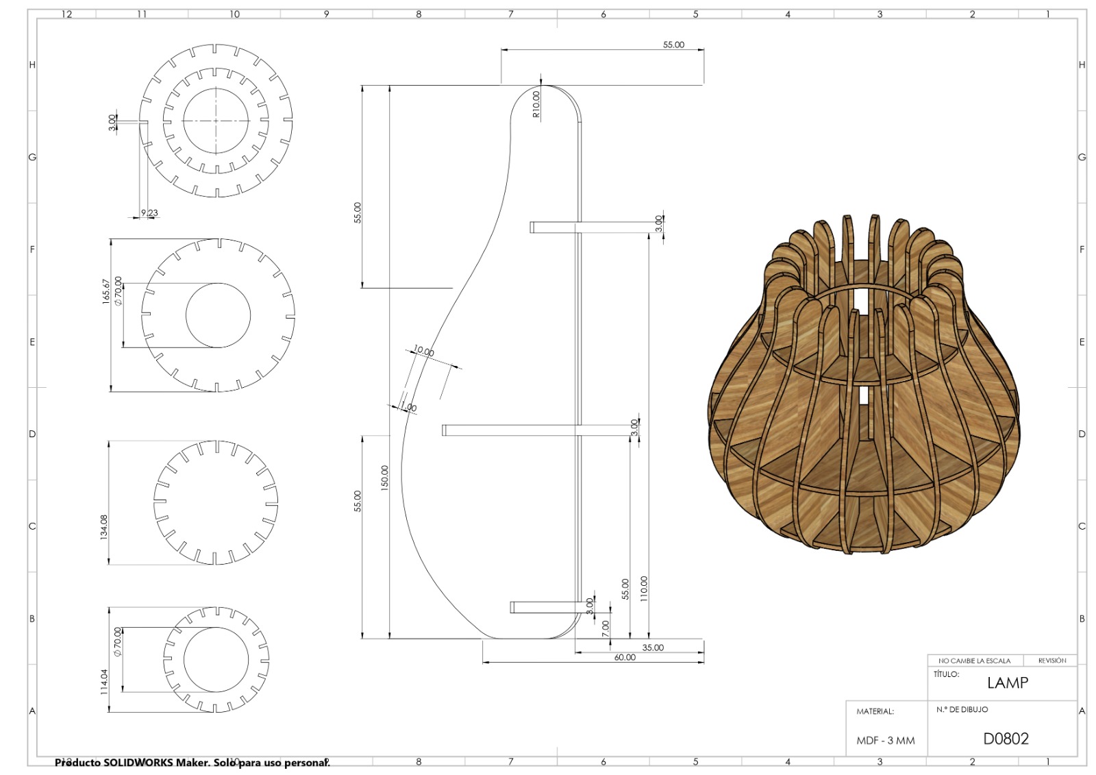 The following model was designed using the principles of parametric construction in SOLIDWORKS. The model is composed of multiple parts manufactured by laser cutting, allowing the creation of an assembly based on a slot-fit system with a thickness of 3 mm was used; These characteristics can be modified by adjusting parameters such as material thickness and slot width to ensure correct assembly when using different materials, without the need to redraw the geometry.