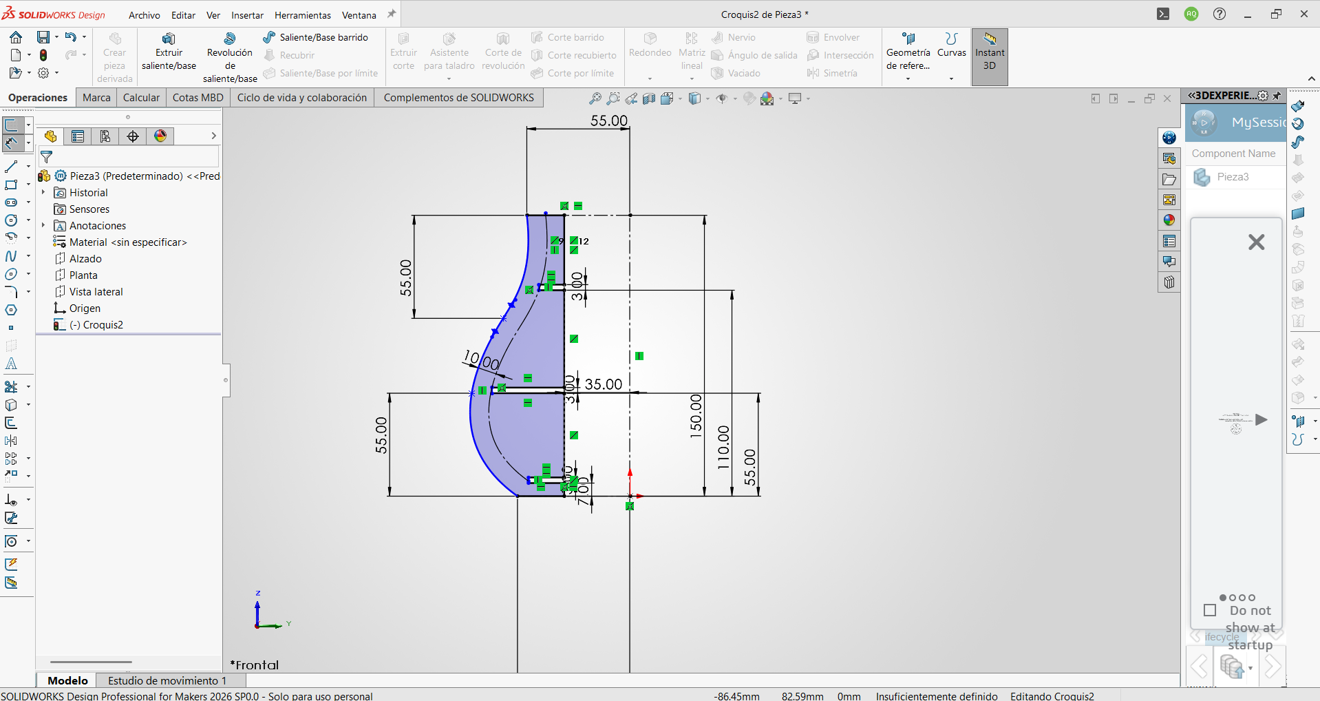 The thickness can be modified by adjusting the feature tree in SolidWorks using the Extruded Boss/Base operation, allowing the design to be adapted to different materials. In this case, the thickness was set to 1 mm as an example of the parametric kit approach, which enables the use of different materials while maintaining dynamic joints.
