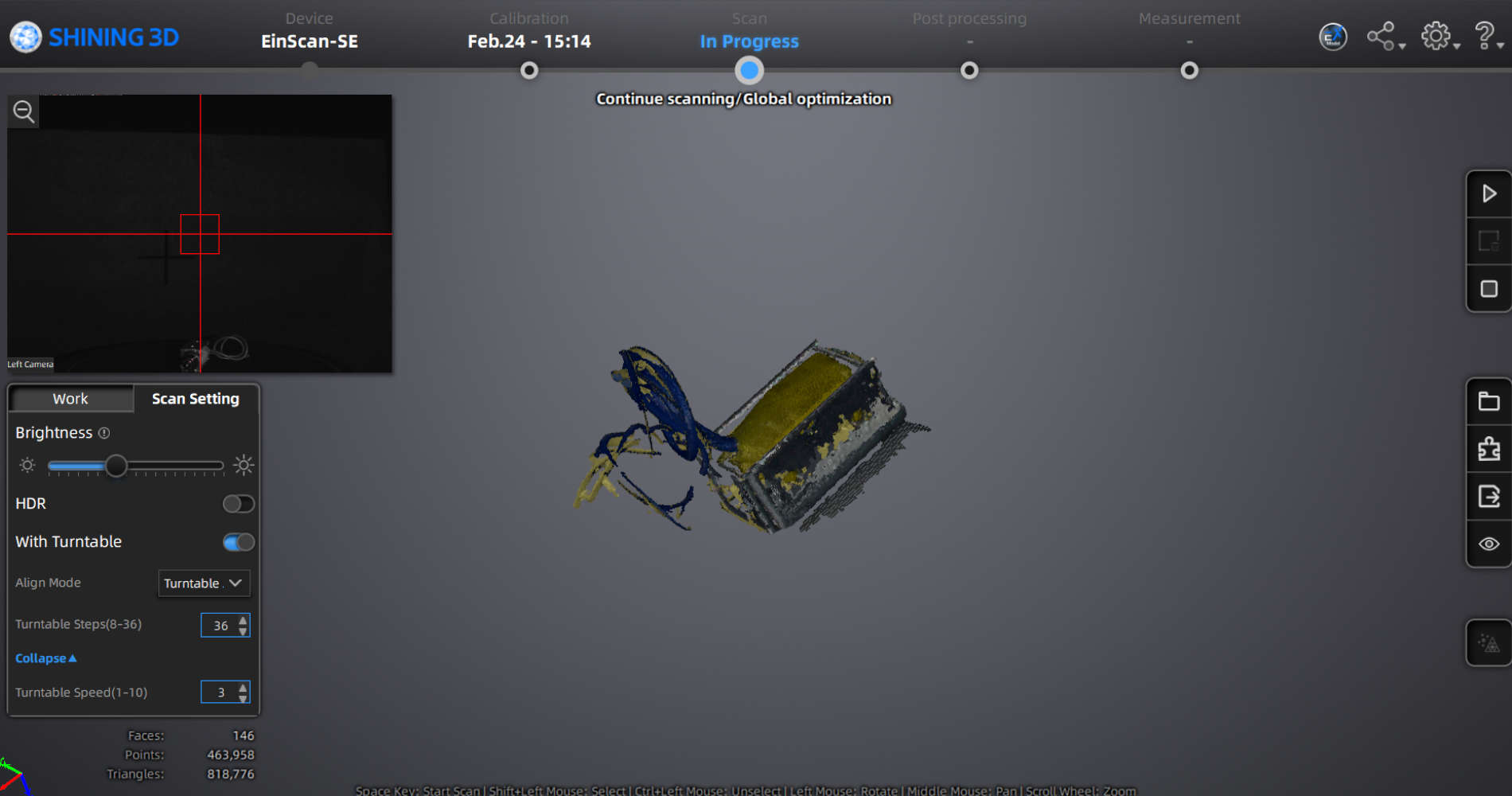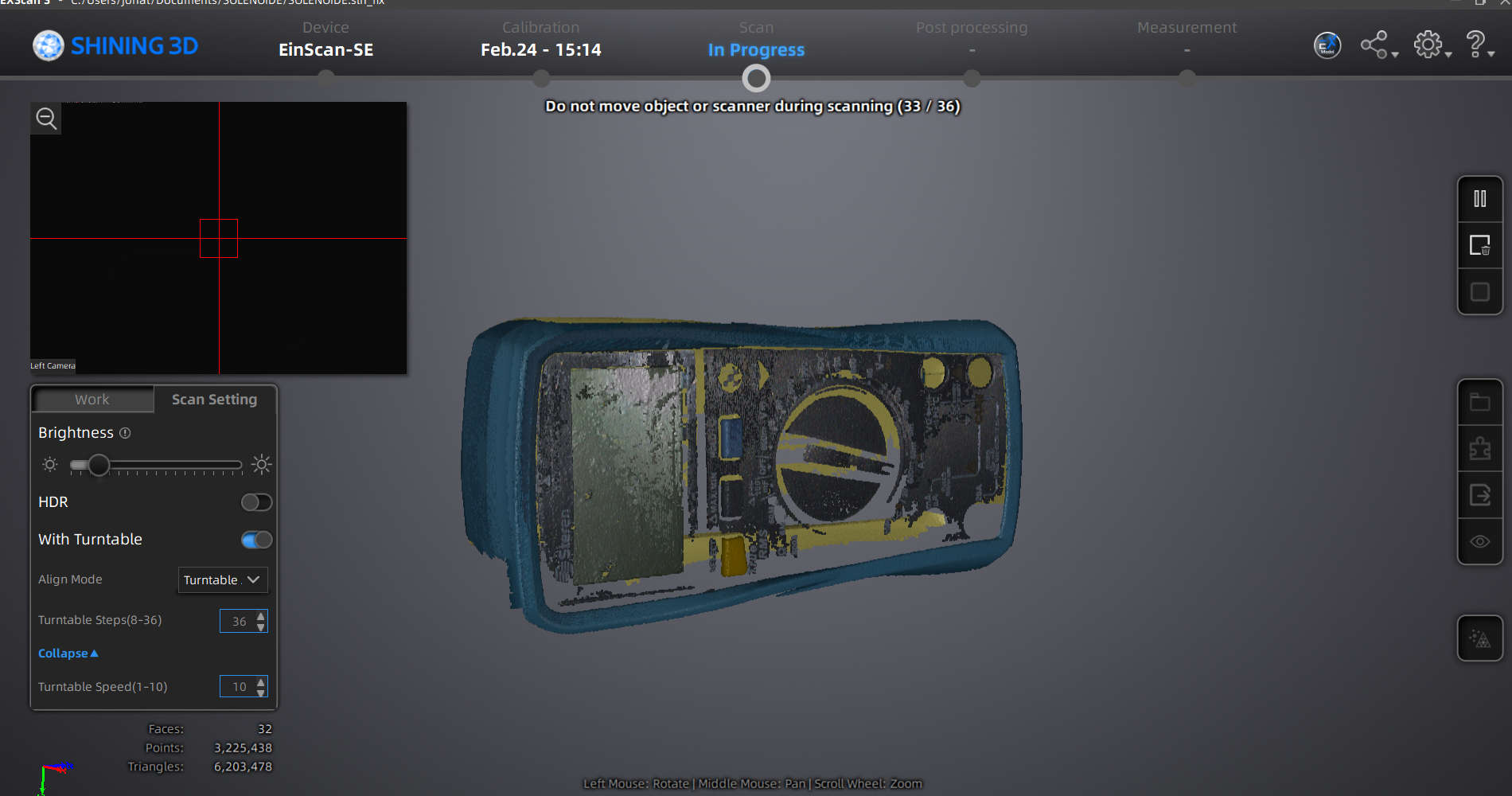We tried scanning another object to determine whether the material or the component’s contrast was affecting the scan quality.