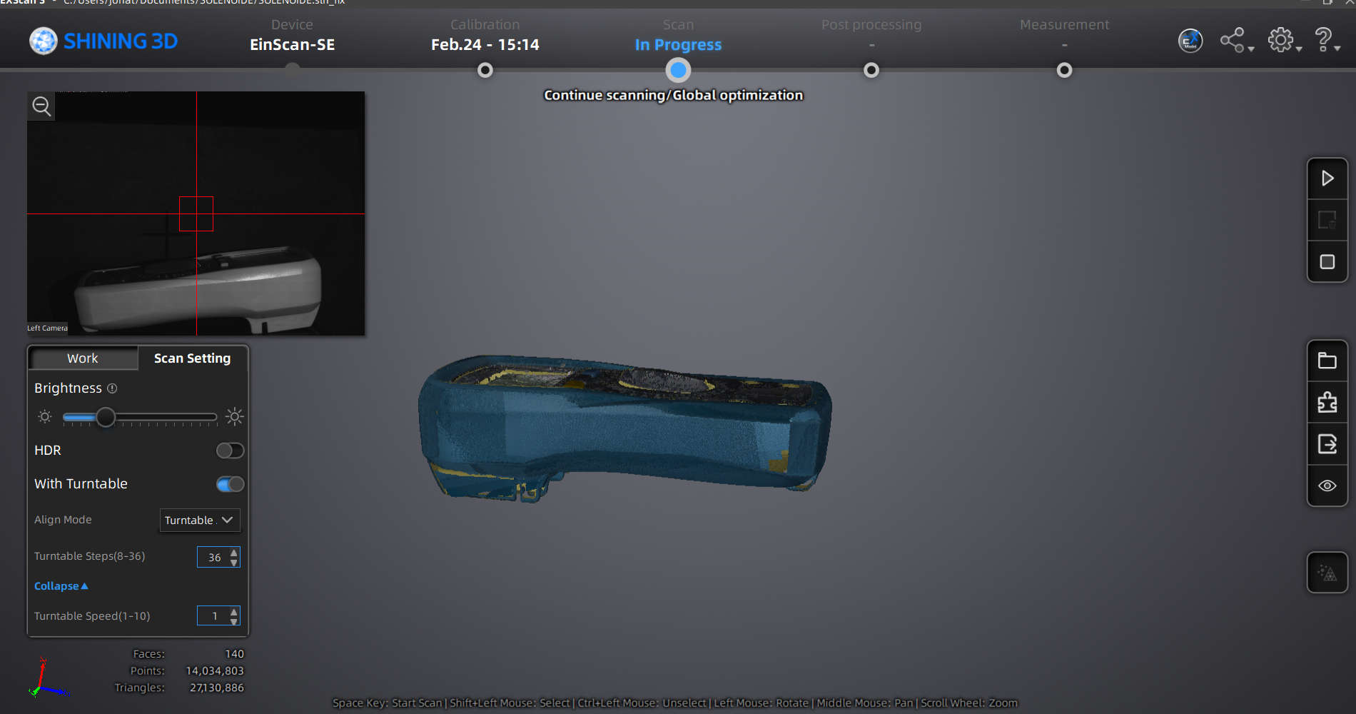 Initially, a scanning attempt was conducted on the solenoid, a key component of the final project system. Due to the material’s surface properties, a contrasting coating was applied to improve scan accuracy. This enabled the evaluation of its dimensional suitability for system integration and to determine whether adjustments to the Braille mechanism were necessary.